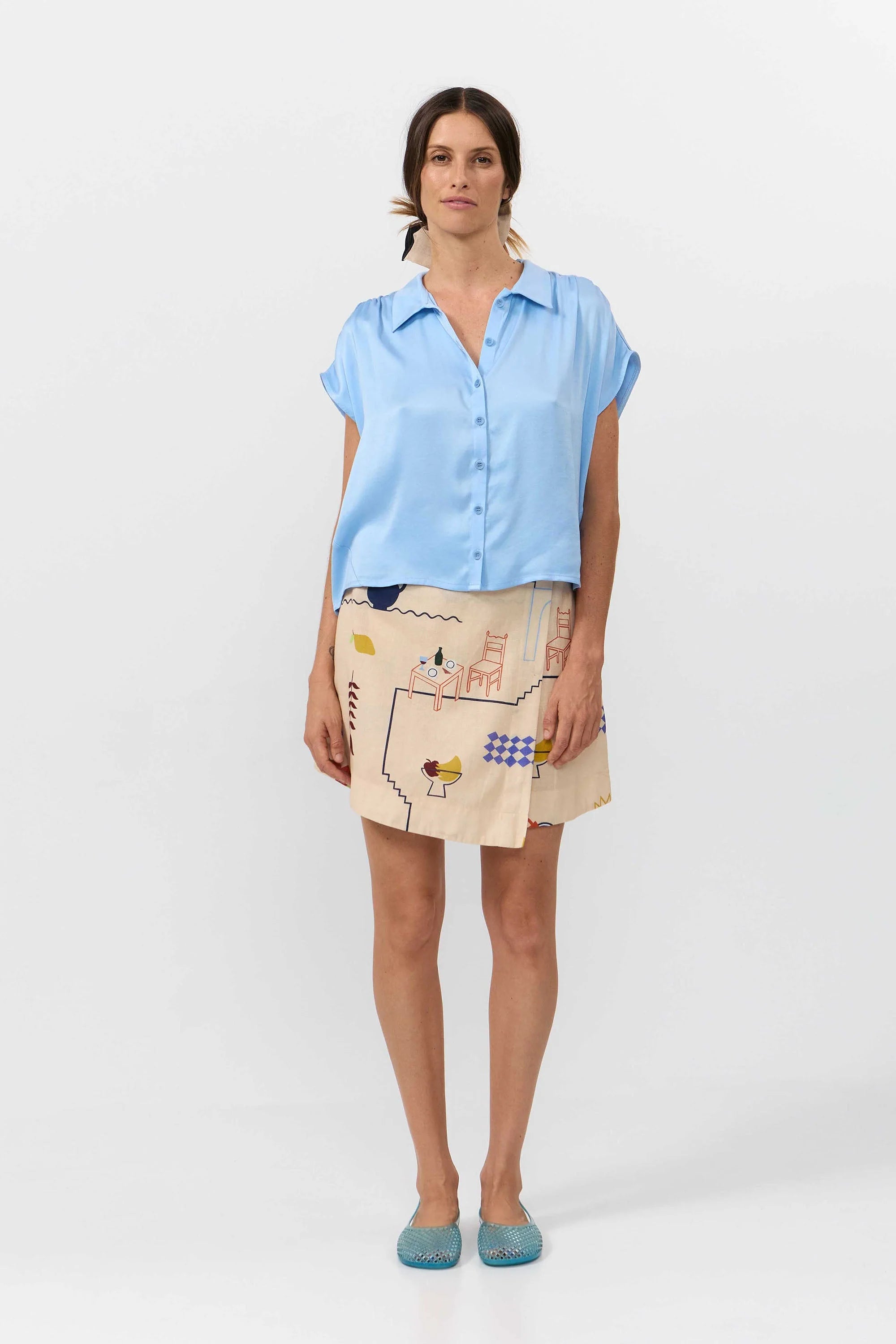 Tessa Short Sleeve Satin Shirt Nougat