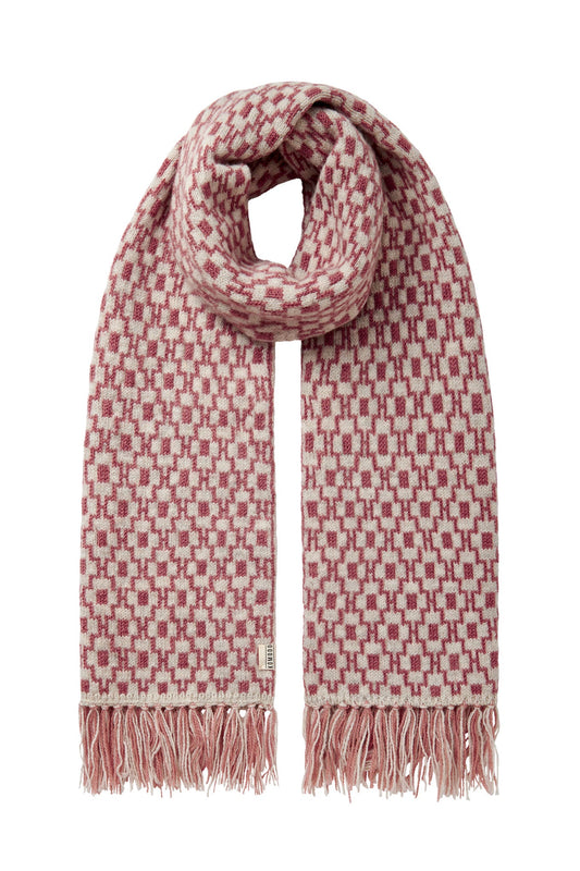Abstract Jacquard Knit Lambswool Scarf Rose