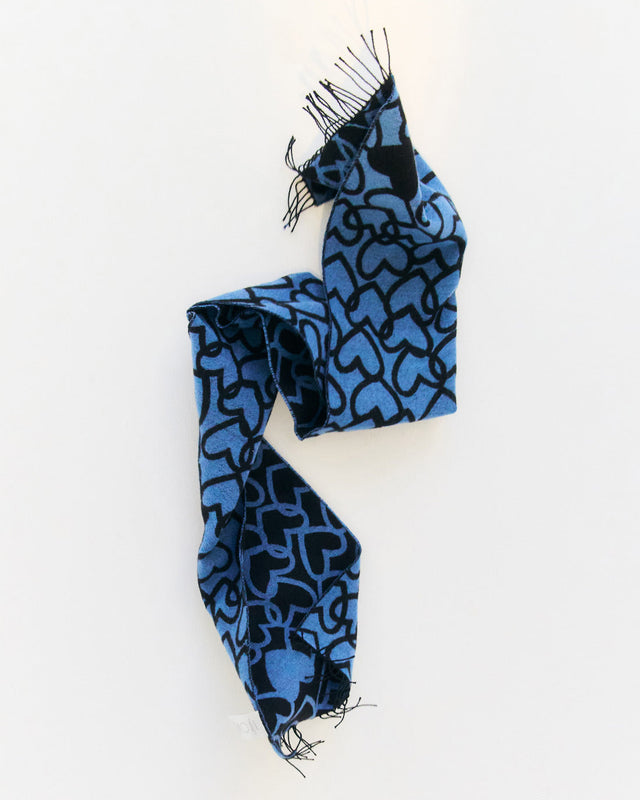 Deze geweven sjaal combineert een kenmerkend lichtblauw hartpatroon met de luxueuze zachtheid van fijne merinowol, en biedt warmte zonder jeuk. Gemaakt in een familiebedrijf in Opper-Franken, het balanceert vakkundig vakmanschap met speels ontwerp, waardoor het een verfijnd maar uniek accessoire is.