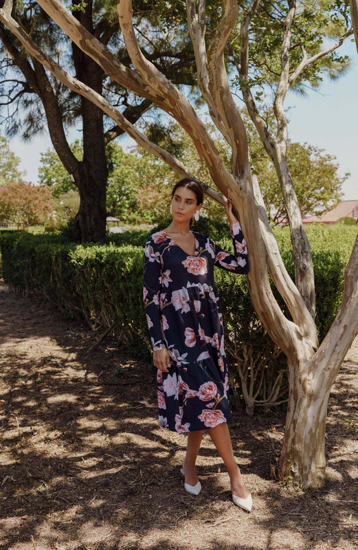 De Amélie Layered Dress Elysian is een elegante midi-jurk gemaakt van zachte, hoogwaardige organisch katoen uit Portugal. De ontspannen maar verfijnde snit valt soepel om het vrouwelijke silhouet te flatteren, met een elegante V-halslijn als hoogtepunt. Fijne lagen voegen diepte en veelzijdigheid toe, waardoor het geschikt is voor zowel dagelijks gebruik als speciale gelegenheden. De Elysian print roept de serene sfeer op van een nachtelijke Japanse tuin, met bloeiende magnoliabloemen. Ontworpen om comfort en stijl te bieden, is deze jurk een uitstekende keuze voor dragers met een grotere maat en een verfijnde garderobe-basis.