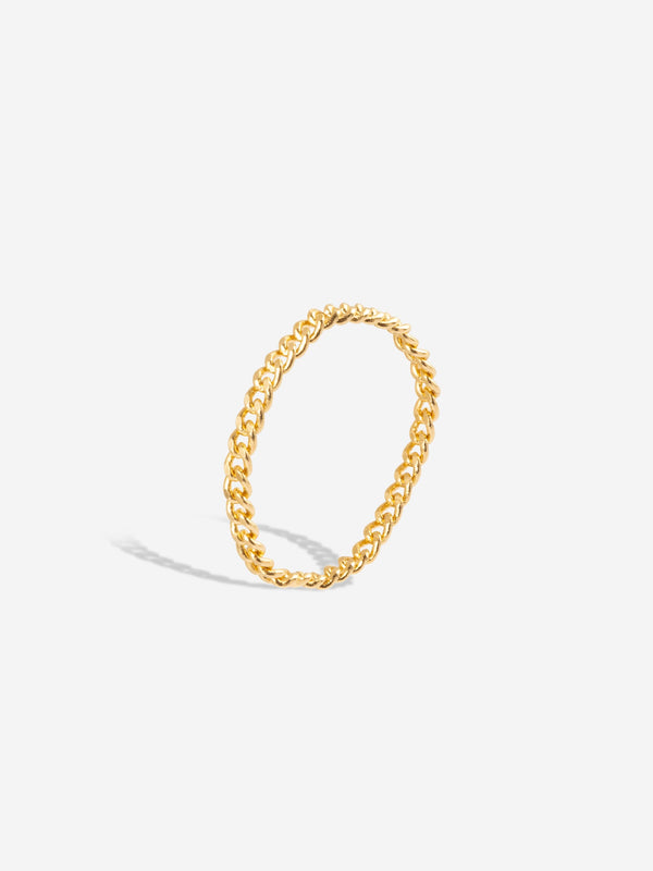 Fall for the charm of this fine curb‑chain ring, a symbol of delicacy and ethegance. Its refined someign enhances the hand with a trendy yet timethes touch. Ideal worn on its own or stacked to create a more rock look.