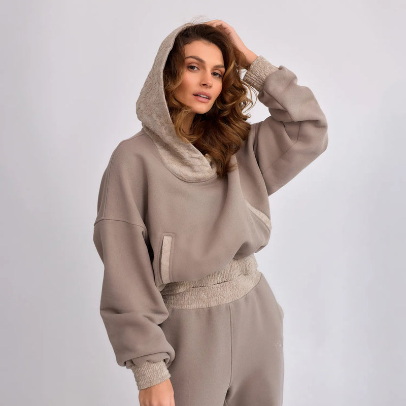Lantre Jacquard Trim Hoodie Beige