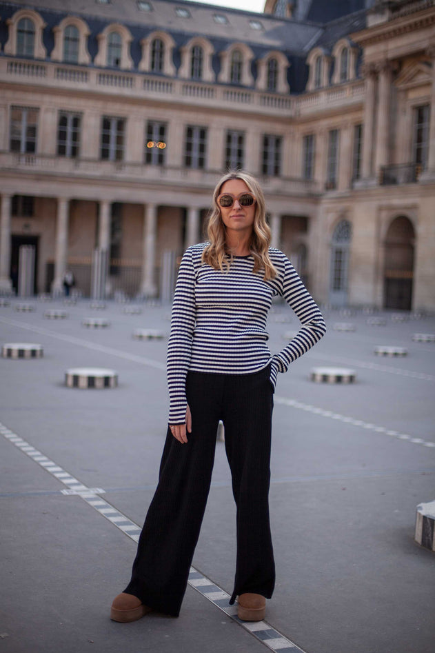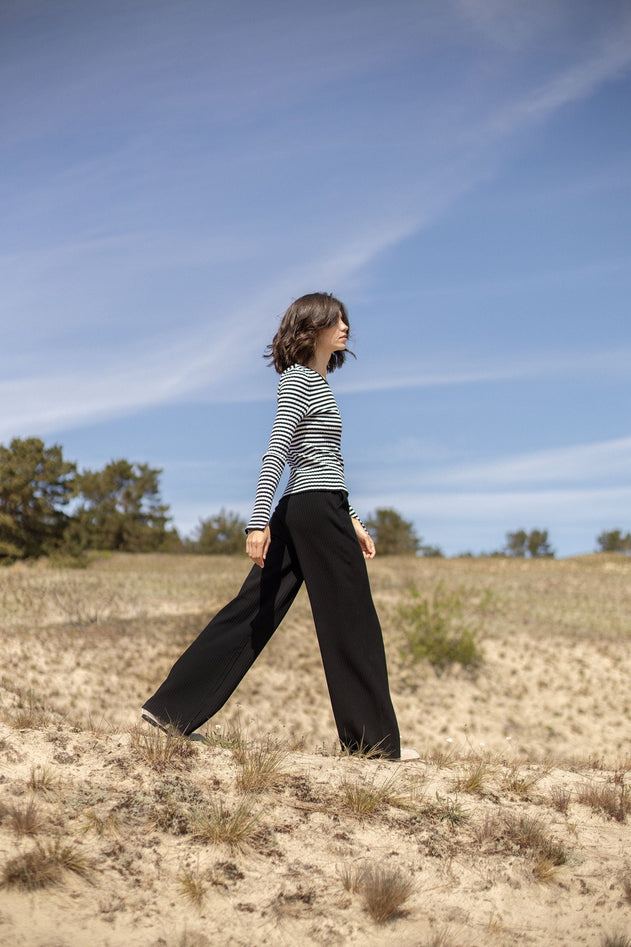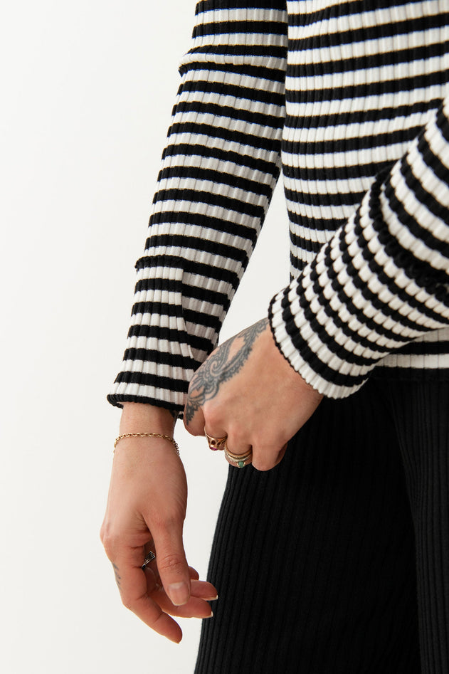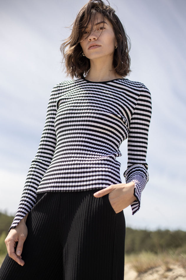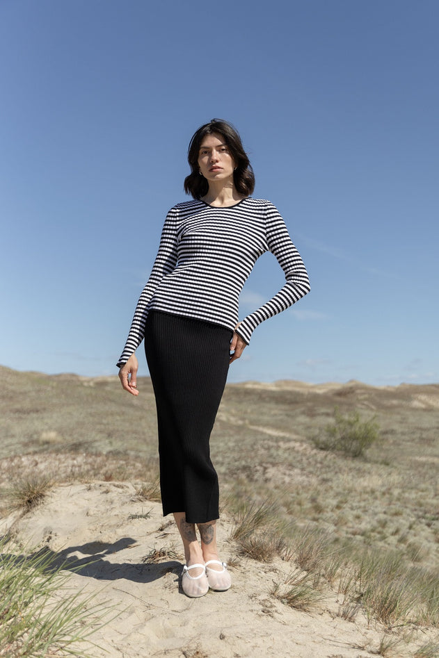Brera Ribbed Long-Sleeve Top Black Stripes