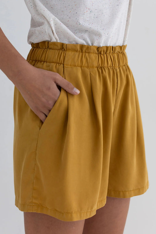TENCEL™ Lyocell shorts in een ontspannen wijd silhouet dat boven de knie valt. Voorzien van steekzakken en een flexibele elastische tailleband voor comfort. Gemaakt van 100% TENCEL™ Lyocell, een ecologisch verantwoorde viscose die ademend, zacht en veganistisch is.