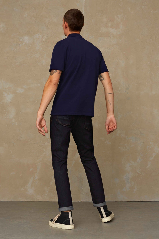 Dit is een jeans met lage impact volgens de EIM-score. Dit wordt berekend op basis van het water-, energie- en chemisch gebruik, en het welzijn van de arbeider met betrekking tot het afwerkingsproces van het kledingstuk.