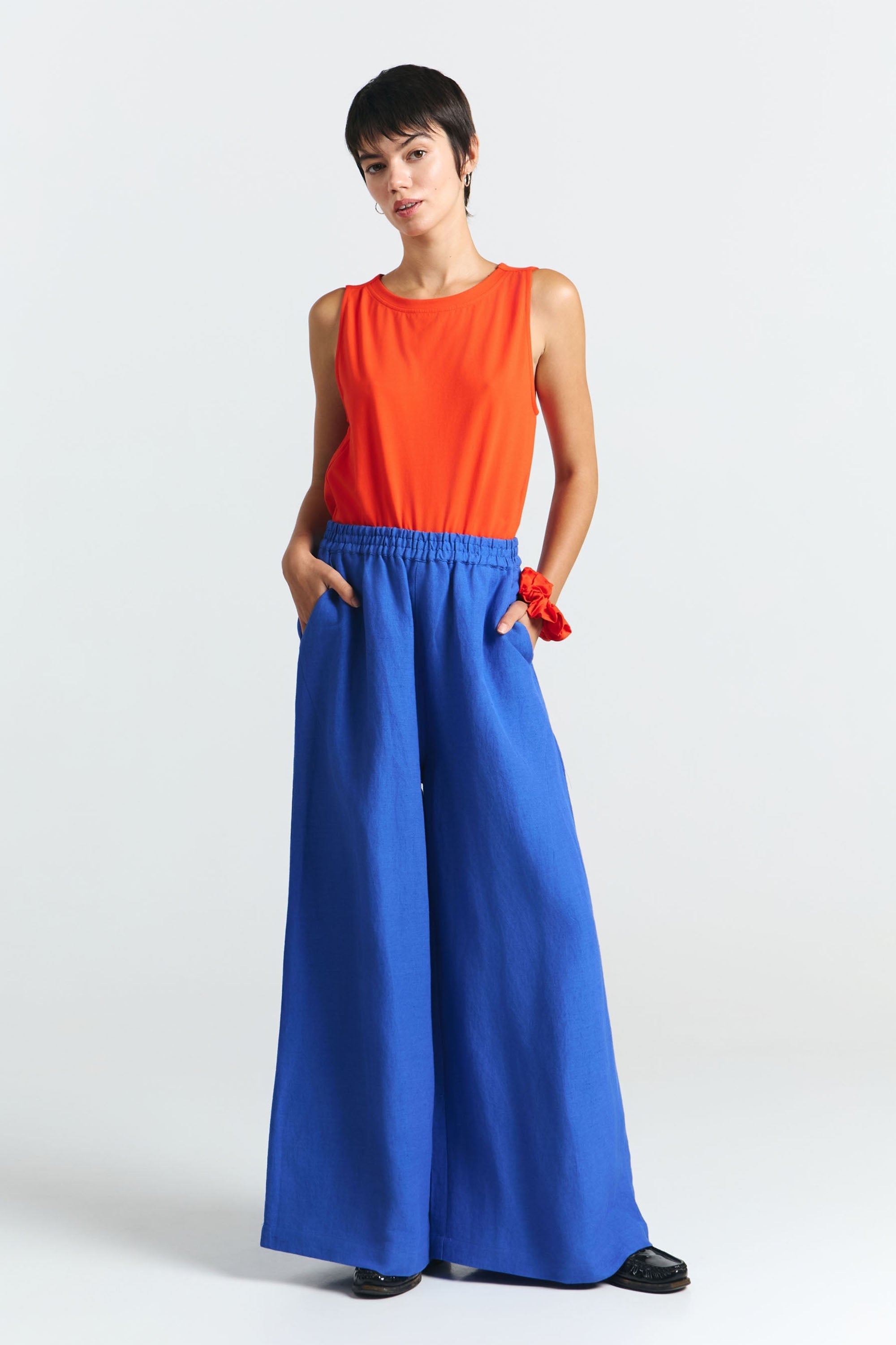 Stap in moeiteloze stijl met deze mid-waist wijde broek. Hun snit levert een luchtig, ontspannen silhouet op, terwijl de elastische tailleband de perfecte flexibele pasvorm biedt. Gemaakt van een lichte mix van linnen en gecertificeerde Livaeco viscose, houden deze broeken je de hele dag koel en comfortabel.
