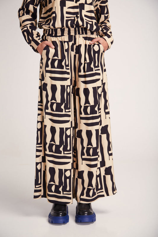 Stap in moeiteloze stijl met deze mid-waist wijde broek. Hun snit zorgt voor een luchtig, ontspannen silhouet, terwijl de elastische tailleband de perfecte flexibele pasvorm biedt. Gemaakt met gecertificeerde Livaeco viscose in een opvallende print.