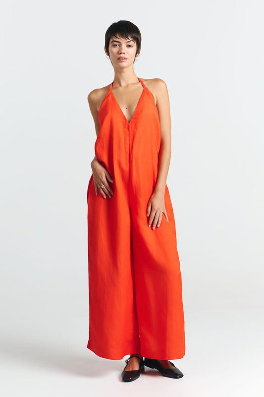 Het lichte en ademende mengsel van linnen en viscose is ideaal voor die zonnige dagen. Met eindeloze stylingopties zal deze jumpsuit jouw ultieme go-to worden voor moeiteloze, chique mode die altijd on point is.
