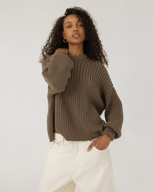"Delčia" betekent "halve maan" in het Litouws, en haar half-en-half stiksel werd geïnspireerd door onze Baltische heidense wortels en de veranderende cycli van de maan. In de heidense cultuur geloven mensen sterk in de energie van de maan en blijven ze ermee in contact. De Delčia organisch katoenen trui belichaamt die perfecte balans tussen de twee uitersten van de jonge maan en de volle maan. Bovendien is de trui ontworpen met een oversized breedte die consistent blijft over alle maten, wat comfort en een ontspannen silhouet biedt voor elke drager.