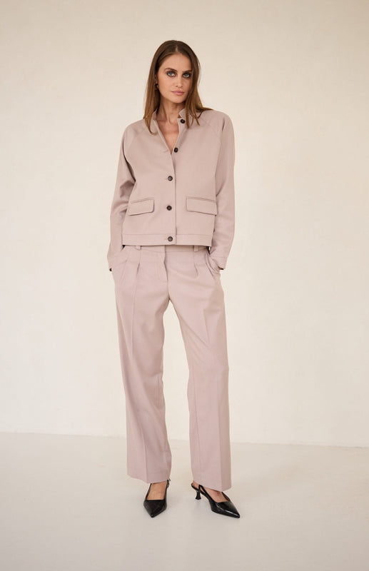 De Enzo cafe latte blazer is een stijlvolle, korte blazer met een losse, sportieve snit en raglanmouwen.