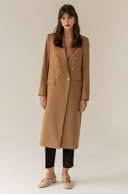 De jas is gemaakt van vlezig viscose stof in een prachtige karamelkleur.