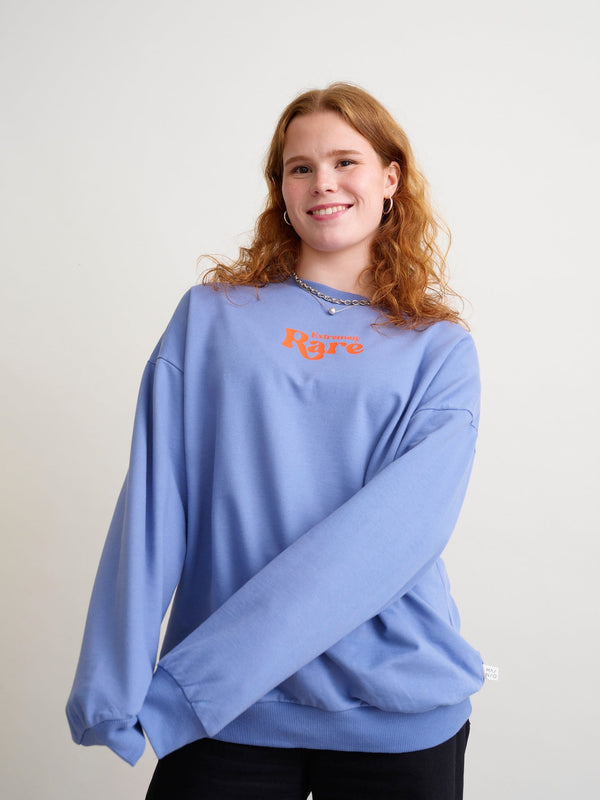 Deze uiterst zeldzame trui in blauw biedt een ontspannen, unisex pasvorm die is ontworpen voor comfort en stijl. Met een onderscheidende print aan de voorkant valt het op als een uniek stuk in elke garderobe. Gemaakt van 100% organisch katoen en GOTS-gecertificeerd, het garandeert duurzame kwaliteit en zachtheid. Let op dat dubbele maten overeenkomen met de grotere maat, wat een gemakkelijke pasvormkeuze biedt. Ideaal voor degenen die zowel milieubewuste materialen als exclusief design zoeken.