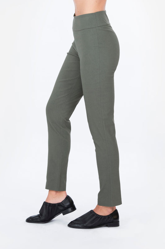 Liisa trousers are long, but shorter than Eeva and Nina trousers. The leg of the trousers is quite narrow, but has still enough roominess at the knee and calf. The trousers fit beautifully and have a supportive double waist panel, making them easy to put on and wear. The trousers are made of stretchy viscose blend fabric.