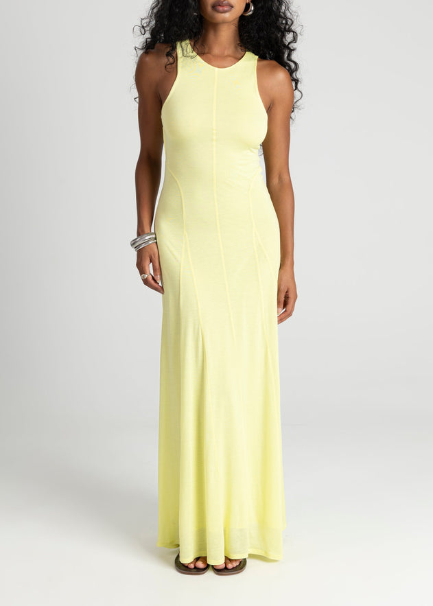 De Florence-jurk heeft een minimalistisch silhouet dat aanvoelt als de zomer zelf. Deze jurk op volledige lengte is vervaardigd uit een zachte mesh, ontworpen om de lijnen van het lichaam te volgen zonder te strak te zitten. De racer-stijl halslijn en de strakke rug creëren een verfijnde, sculpturale vorm, gemakkelijk, verlengd, stilletjes sensueel.