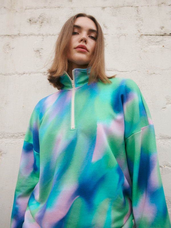 Deze oversized unisex sweatshirt met een kwart rits biedt een ontspannen, comfortabele pasvorm, waarbij de dubbele maat overeenkomt met de grotere maat voor een ruim gevoel. Het heerlijk zachte, geborstelde interieur zorgt voor warmte en comfort. Een geweven "Know jouw power" patch aan de voorkant voegt een unieke vleug inspiratie toe. Gemaakt van 100% organisch katoen, combineert dit GOTS-gecertificeerde product stijl, duurzaamheid en kwaliteit.