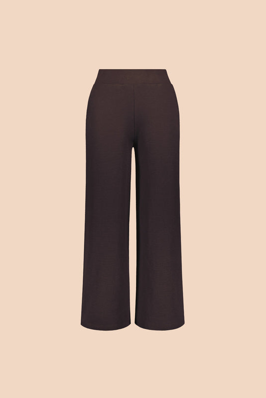 Alledaagse culottes in rijke chocoladebruin bieden een perfecte mix van comfort, kwaliteit en stijl voor het hele jaar door. Gemaakt van stevige maar rekbare ponte roma interlock stof, zorgen deze culottes voor een nette, gepolijste uitstraling terwijl ze uitzonderlijk zacht aanvoelen op de huid. Ze hebben een brede elastische tailleband van 5 cm en voorzakken voor praktisch gebruik. Denimstijl stiksels langs de zijnaden voegen een onderscheidend, scherp detail toe. Veelzijdig en gemakkelijk te combineren met verschillende tops, zijn deze culottes een essentiële garderobe basis voor zowel casual als elegantere gelegenheden.