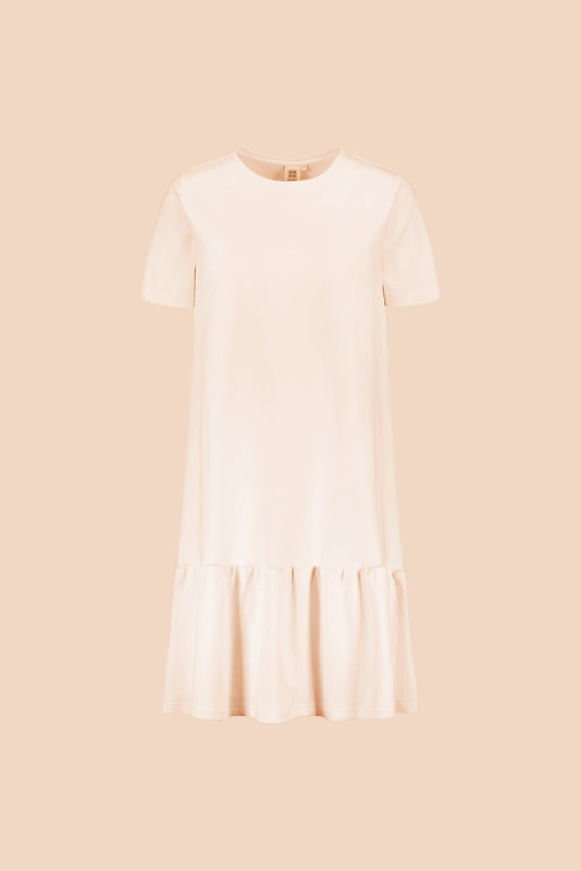 De Ruffle T-shirt Jurk Ivoor combineert casual stijl met comfort, vervaardigd van zachte organisch katoen voor een zacht gevoel op de huid. De ontspannen pasvorm wordt versterkt door iets verlengde mouwen en een subtiele ruches aan de zoom, wat een speelse maar ingetogen silhouet biedt. verantwoord gemaakt van natuurlijke materialen, is deze jurk een uitstekende keuze voor degenen die dagelijks gemak en doordacht ontwerp in hun garderobe zoeken.