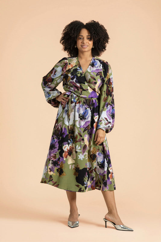 Wrap Midi Dress Olive Anemone