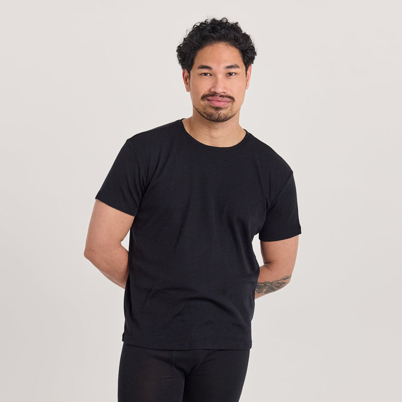 KLASSIKKO heren t-shirt is scherp en aansluitend, maar tegelijkertijd ontspannen en zeer rekbaar. Het t-shirt heeft een ronde hals met een brede bies.
