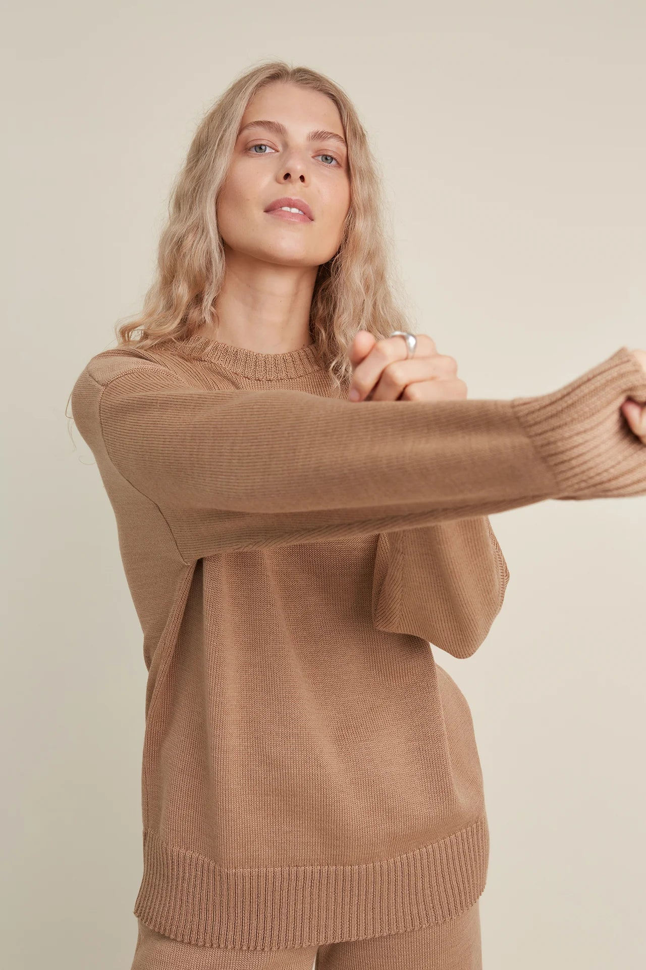 Crew Neck Merino Wool Knitted Sweater Onesize