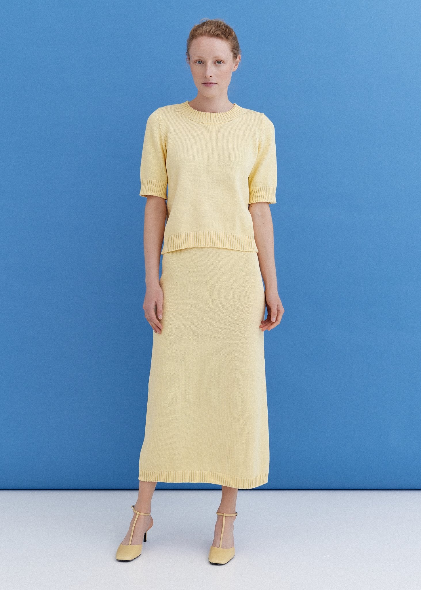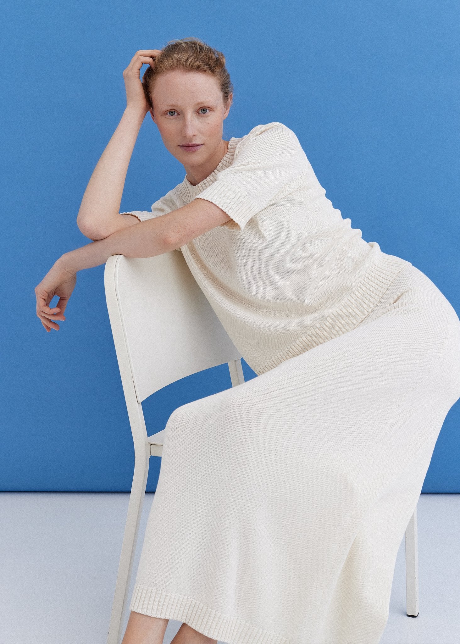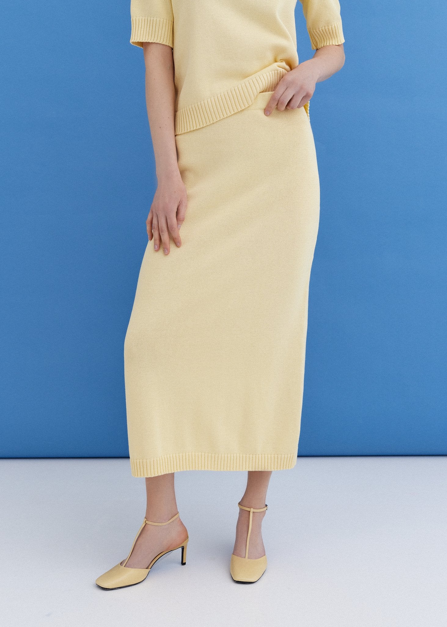This long knitted skirt is designed to go with everything and last through everything. It offers a clean silhouette with a natural drape and effortless comfort. The elasticated waist gives flexibility without compromising elegance – wear it high or low, how you like.