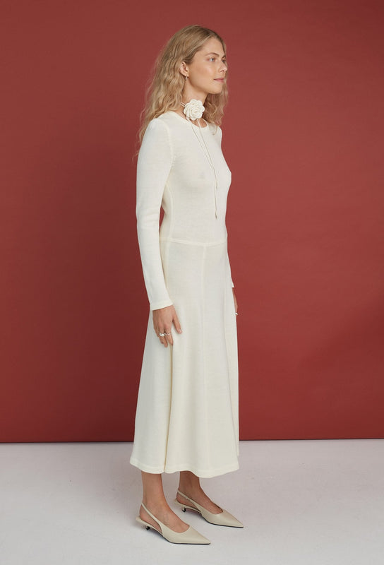 Ontdek verhoogd comfort met de Gebreide Merino Wol A-Lijn Midi Jurk, volledig gemaakt van 100% merinowol om uitstekende zachtheid en ademend vermogen te garanderen. De elegante A-lijn silhouet biedt een flatterende pasvorm die aanpasbaar is aan verschillende gelegenheden. Ideaal voor laagjes in koelere seizoenen of solo dragen bij gematigde temperaturen, deze veelzijdige jurk garandeert comfort het hele jaar door. Met duurzaamheid als prioriteit vervaardigd, belichaamt het Monala’s toewijding aan slow fashion en doordachte verfijning.