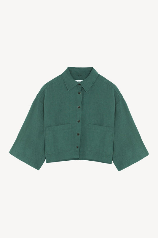 Relaxed fit button-up overshirt met uitlopende 3/4 mouwen, een gespreide kraag en een Amerikaanse knoopsluiting. Dit iets kortere shirt zou heel goed passen bij een broek of jeans met hoge taille.