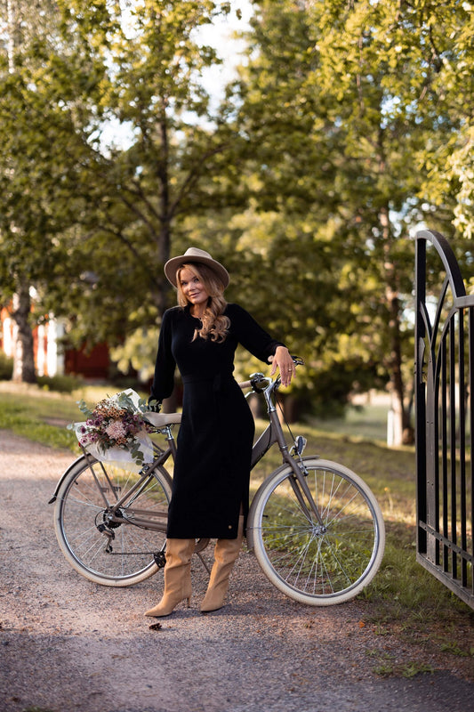 Leona Merino Jurk Zwart is gemaakt van zachte, ademende merinowol die de lichaamstemperatuur reguleert voor comfort de hele dag door. De elegante silhouet heeft lange, volumineuze mouwen met smalle manchetten en een verfijnde verticale ribbelsteek, die houding en stijl verbetert. De vloeiende pasvorm flatteert meerdere lichaamstypes, terwijl de ronde halslijn en de midi-lengte zoom veelzijdigheid bieden voor zowel dagelijks gebruik als winterse gelegenheden. Deze jurk balanceert tijdloos design met praktisch comfort, waardoor het een uitstekende keuze is voor een gepolijste maar gezellige garderobe basiselement.