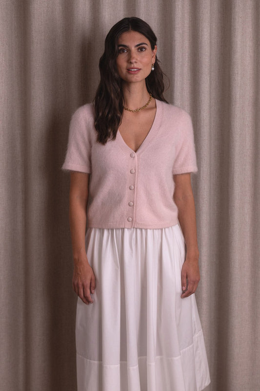 Karlian Short-Sleeve V-Neck Cashmere Cardigan Pale Pink