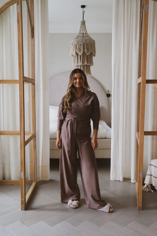De Mena loungewear set bestaat uit een wikkel-top gemaakt van een zeer comfortabele, goed passende stof en zachte, recht gesneden broek. De Mena loungewear stof is uitzonderlijk zacht en comfortabel, licht gestructureerd en een van de beste en meest opwindende stoffen die we tot nu toe in onze producten hebben gebruikt. De set is de perfecte metgezel thuis, op het werk en tijdens vrije tijd. Het model is 174 cm lang, draagt maat M/L en draagt maat M loungewear op de foto. Als je de broek langer of korter wil, geef dan jouw gewenste binnenbeenlengte aan in het bestelcommentaar.