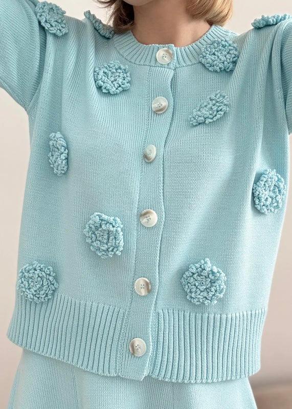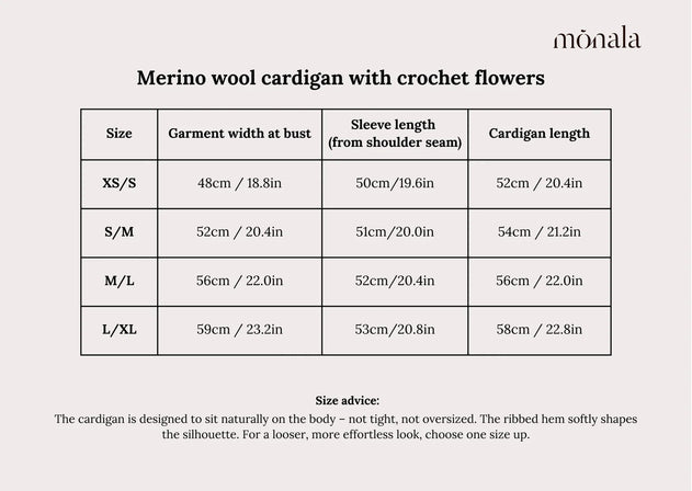 Crafted stitch by stitch on manual machines in Lithuania, this merino wool cardigan celebrates slow fashion with personality. Hand-crocheted floral appliqués add whimsy to a relaxed silhouette, while ribbed details at the neckline, cuffs, and hem keep things polished. Made to order in 5–9 days, each piece is thoughtfully finished by hand using 100% responsibly sourced merino wool—naturally biodegradable and built to last. Choose from the full colour palette and wear knowing your cardigan was made with care.