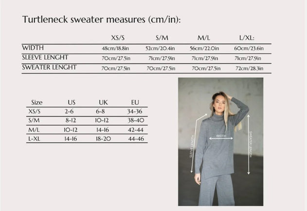 • Model Viktorija (wearing a beige sweater) is 175cm/5'9'', chest 86cm/33.8in, hips 88cm/34.6in, wearing a size S/M.
