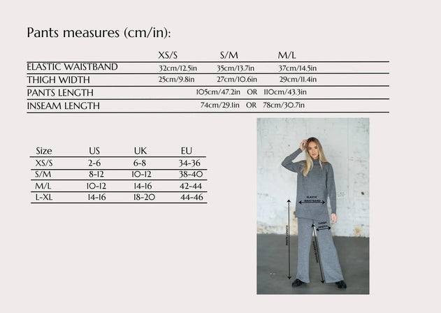 • Model Meda (wearing a natural white and dark blue pants ) is 178 cm/5'10'', waist 61 cm/24.0in, hips 92cm/36.2in and wearing a size S/M, length 110 cm/41.3 in.