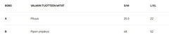 Size Guide - Product Measurements