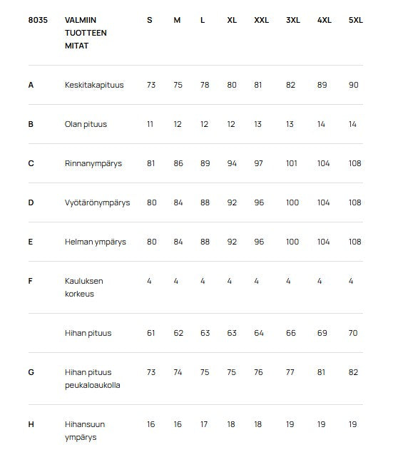 Size Guide - Product Measurements