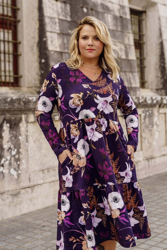 Nakoa's gelaagde jurk is een hoogwaardige en tijdloze must-have jurk voor herfstdagen. De jurk kan worden gecombineerd met een paar laarzen en is gemakkelijk te accessoriseren voor verschillende situaties. De stof is zacht en van hoge kwaliteit GOTS-gecertificeerde katoenelastaan uit Litouwen, wat aangenaam aanvoelt op de huid.