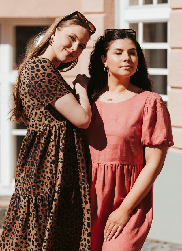 De Astrid-jurk is een losse maar flatterende zomerjurk met prachtig pofmouwen. Deze lange linnen maxi-jurk is een zorgeloze en vrouwelijke keuze voor warme dagen. Gemaakt van 100% linnen, is de prachtig gedrapeerde gelaagde jurk een zomerbasisstuk dat gemakkelijk te stylen is naar jouw persoonlijke smaak.