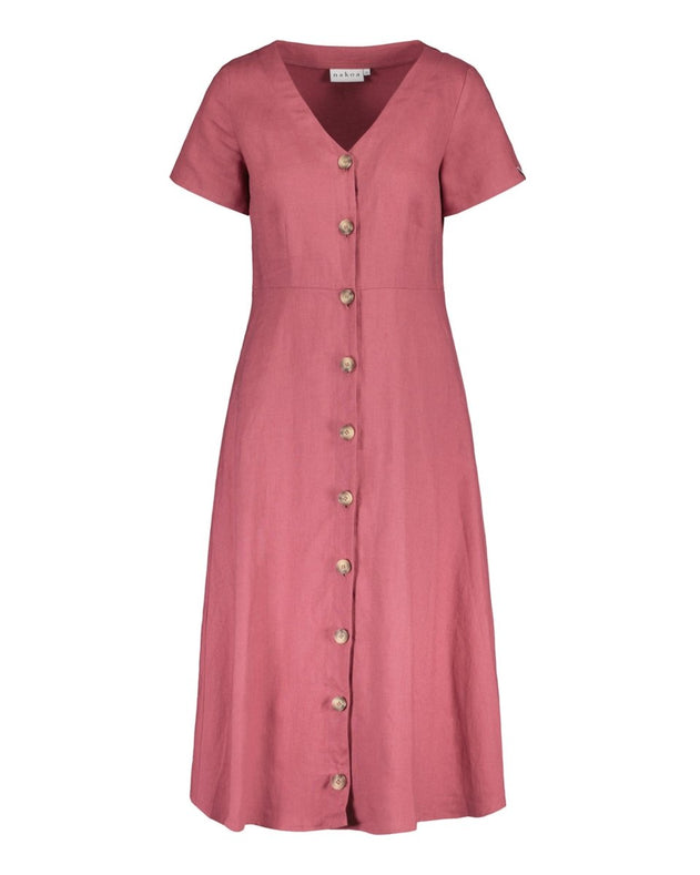 Gemaakt van hoogwaardig linnen, heeft de Penelope-jurk een ontspannen, midi-lengte snit, waardoor het een perfecte keuze is voor elke gelegenheid. De prachtig passende jurk loopt iets uit naar de zoom toe, wat een elegante en luchtige uitstraling creëert.