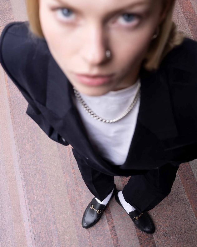 Introductie van Shiv Loafers, de perfecte mix van stijl en comfort. Deze mocassins zijn vervaardigd met materialen van de hoogste kwaliteit, wat zorgt voor een langdurige duurzaamheid. Het strakke zwarte ontwerp zal elke outfit naar een hoger niveau tillen, waardoor ze een must-have zijn voor elke modebewuste vrouw. Stap in stijl met Shiv Loafers.