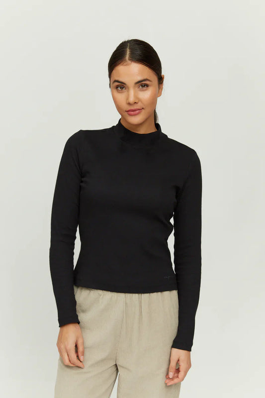 Top met lange mouwen en lage halslijn, gemaakt van GOTS organisch katoenmix.