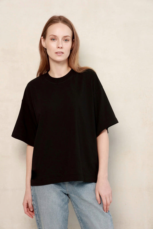 Line is an oversized T-shirt in a minimalist cut with wide sleeves. The material is öeko-tex certified jersey fabric.