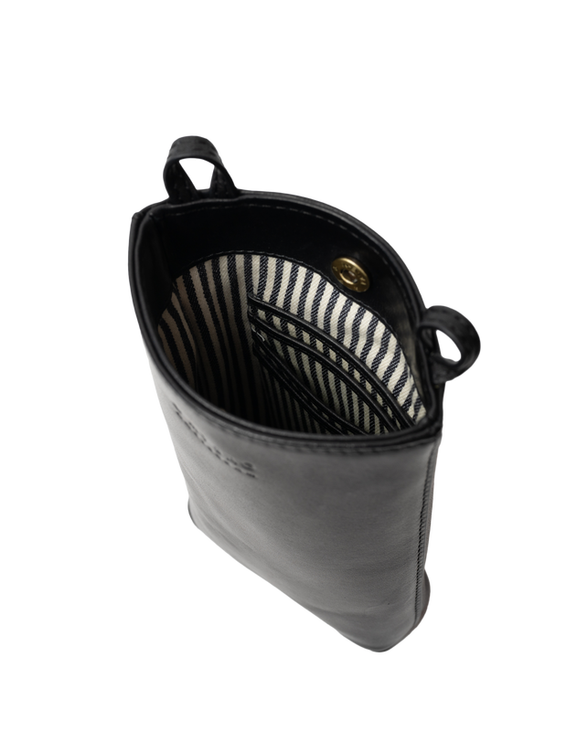 Wil je handsfree door de stad lopen, maar is een tas te groot? Charlie Phone Bag is de perfecte keuze voor je. Ideaal voor stedentrips, Charlie is een compact ontwerp maar met een ruim hoofdvak dat een mobiele telefoon van elk formaat kan bevatten, evenals jouw kaarten en sleutels. Deze mini tas wordt geleverd met twee riemen en is vastgemaakt met een drukknoopsluiting.