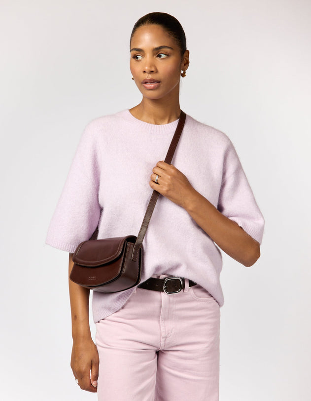 Jackie Midi Bag with Webbing Strap Classic Leather Chocolate Brown