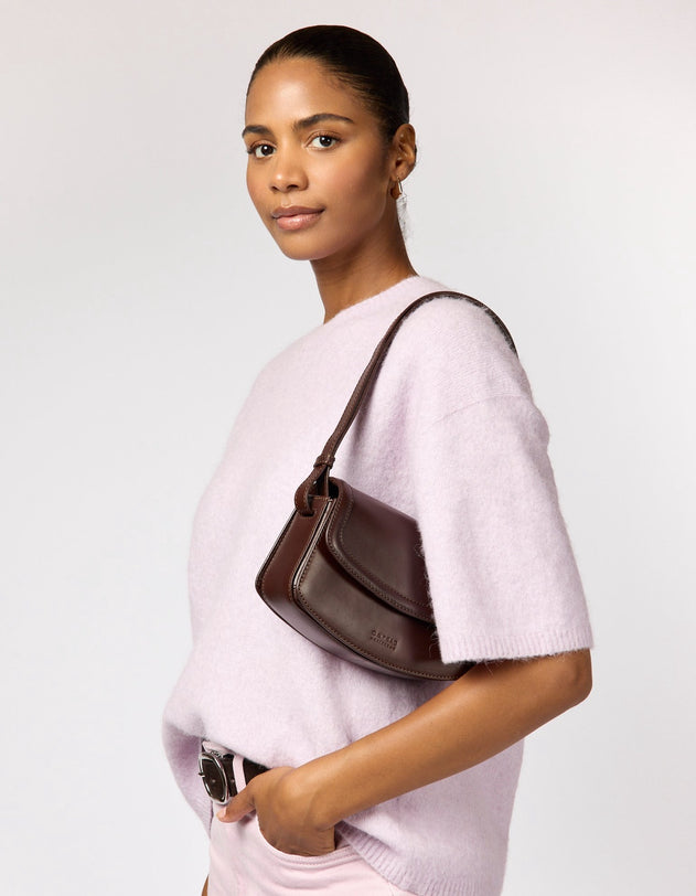 Kendalini in Chocolate Classic Leather straalt verfijnde elegantie uit met zijn gladde, elegante rondingen. Gemaakt voor veelzijdigheid, beschikt het over een verstelbare riem die moeiteloos overgaat van schouder- naar crossbody-draagstijl. Ontworpen voor praktische elegantie, bevat de tas drie ruime compartimenten, een magnetische sluiting, een binnenvak met ritssluiting en een insteekvak—ideaal voor het organiseren van benodigdheden zoals zonnebrillen en sleutels. Antiek messing beslag maakt dit tijdloze stuk compleet, waardoor Kendalini een voorname keuze is voor elke gelegenheid.