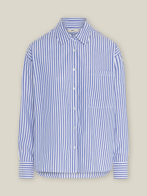 Favoriete statementstuk! Het coole gestreepte shirt gemaakt van organisch katoen! Licht overgesneden schouder, oversized vorm en een borstzakje evenals betoverende kleine parelmoeren knoopjes. Het is een absolute favoriet en sleutelstuk van de capsulegarderobe. Het heeft een vrij rechte snit aan de voorkant en is afgerond en iets langer aan de achterkant. Het biedt vele mogelijke combinaties. Puur, als een laagjesstijl, open met een top eronder of preppy voor op kantoor!
