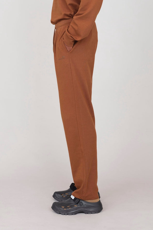 Rekbare interlock joggers met plooien en zijzakken. Gecertificeerd en gemaakt van hoogwaardig organisch katoen.
