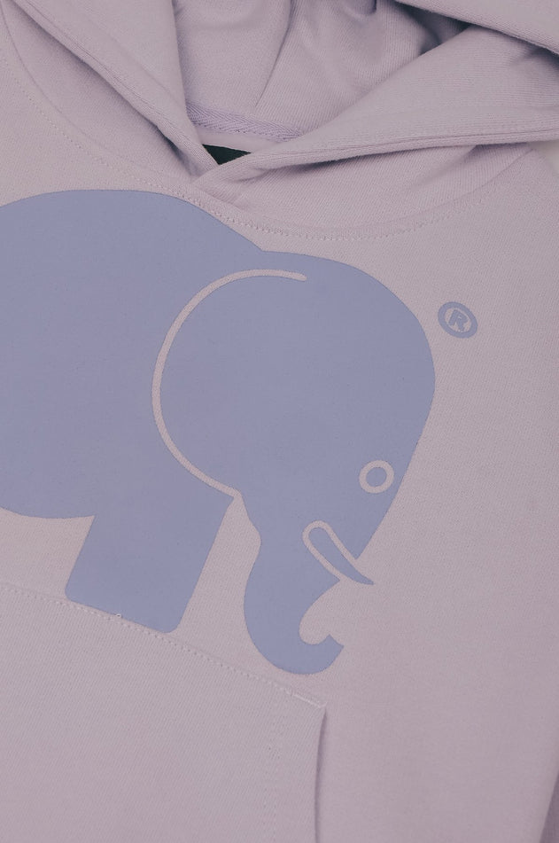 Paarse kinderhoodie met een olifantenprint.