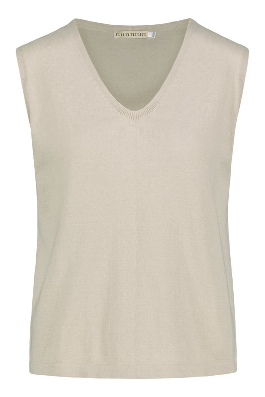 Deze nieuwe mouwloze top uit de Airisto-collectie van niinmun is gebreid met luxueus zachte en lichte organisch katoen. De top heeft een prachtig vloeiend, licht vestachtig ontwerp en een V-hals. Driftwood is een prachtige zachte gebroken stopverf in toon.