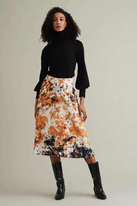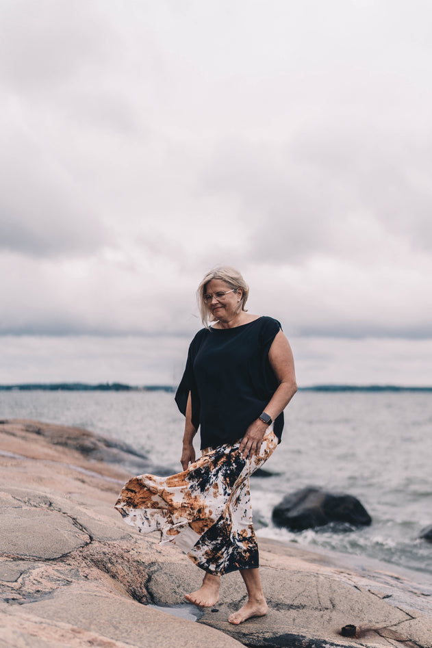 Mooie, aflopende en tijdloze midi-rok. Stijlvolle middellange lengte, geschikt voor zowel platte schoenen als hoge hakken. Het rokmateriaal is duurzame Ecovero viscose, die prachtig valt en beweegt tijdens het lopen. De Framtiden midi-rok is gemakkelijk te combineren met verschillende tops voor zowel kantoor-, dagelijkse als feestelijke gelegenheden. Er is een verborgen rits en zakken in de zijnaden. Lengte 75 cm.