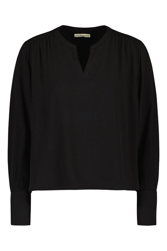 Een klassiek mooie Sellmo blouse in een vernieuwd model. Het materiaal is 100% ecovero, wat prachtig valt. Een vrouwelijke en eenvoudige blouse voor dagelijks gebruik en feestjes. Mooie details op de mouw omvatten een lange manchet met een knoop. De zoom is licht afgerond en er is een split aan de zijkant. Een mooie rimpel op de schouder, waardoor de blouse prachtig valt en een losse pasvorm geeft. De split en zoom bij de halslijn geven een afgewerkte uitstraling.